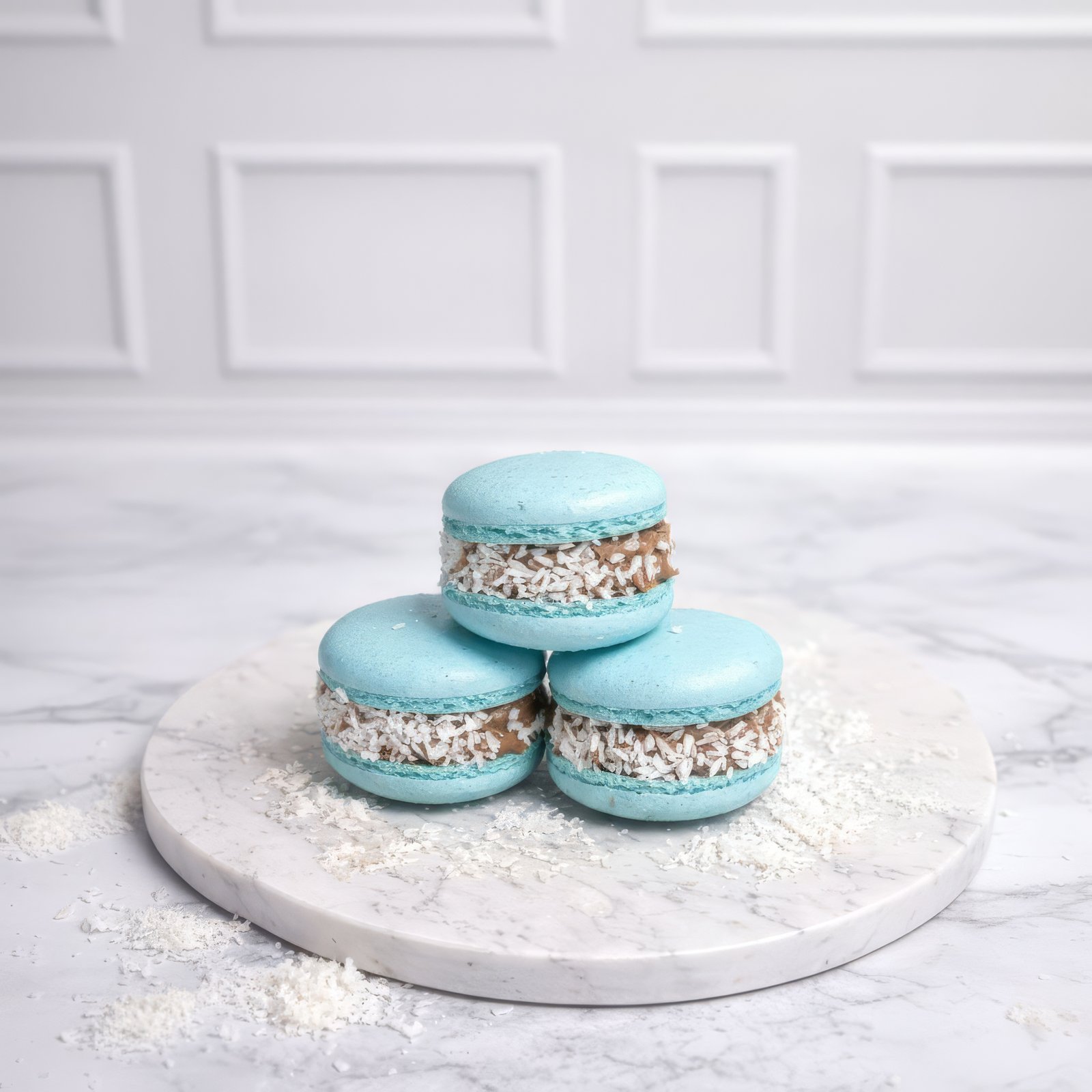 Фірмовий макарон Malini Sweets — смак, з якого починається знайомство з брендом. Ніжні мигдальні кришечки і оксамитовий ганаш із білого шоколаду.